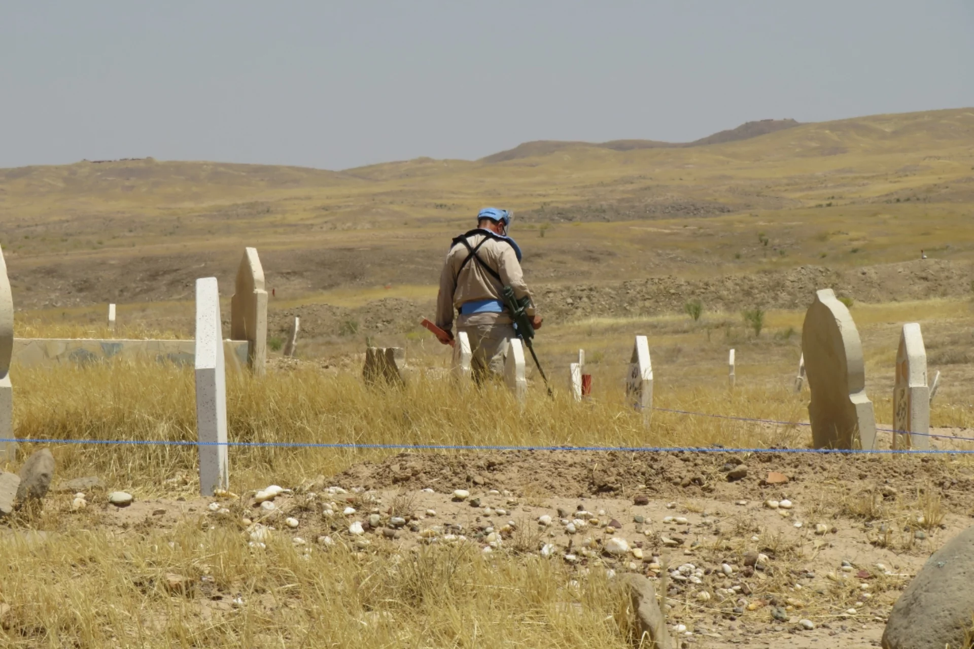 Ein minenverseuchter Friedhof rehabilitiert im Irak