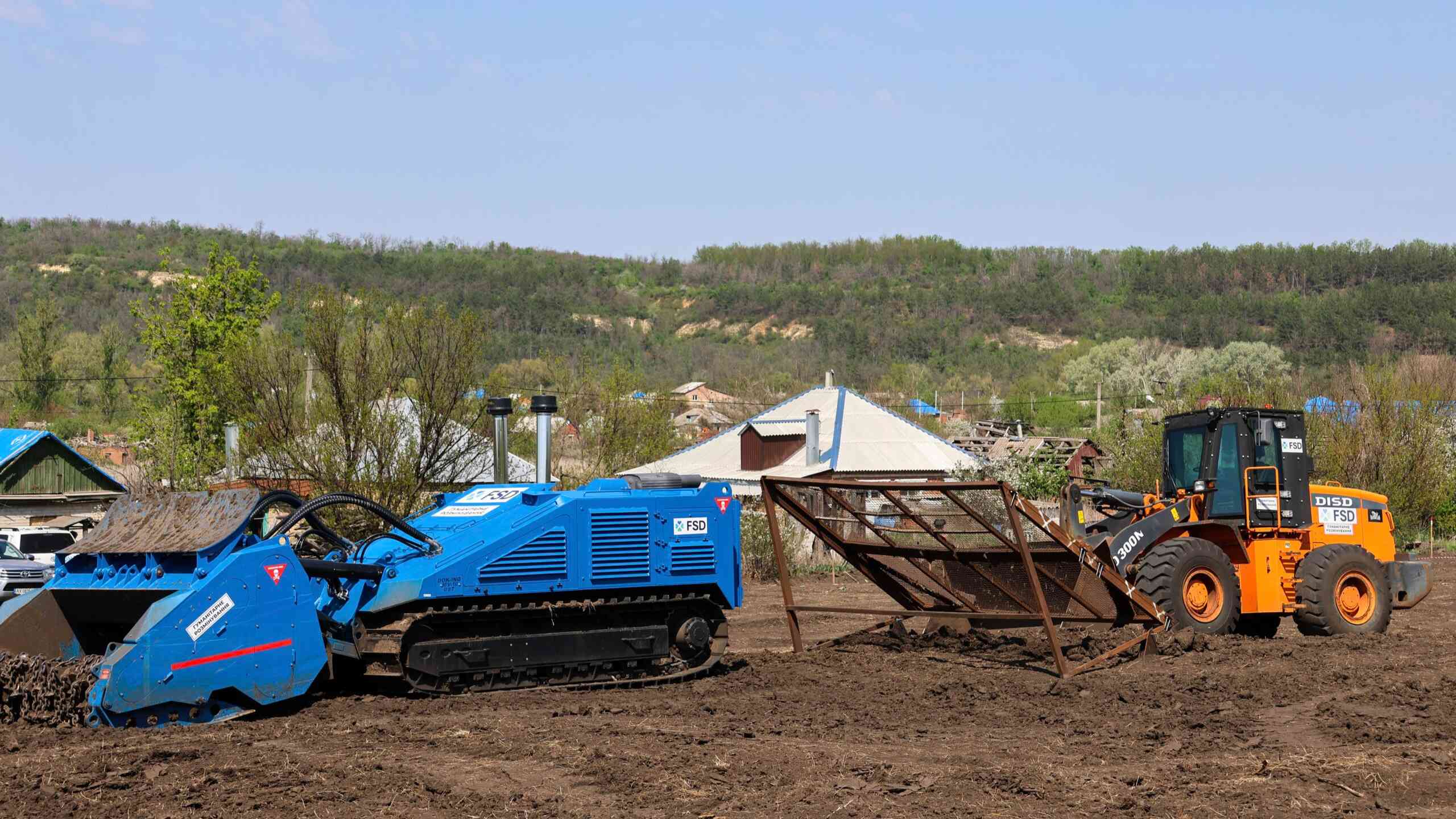 Bodenvorbereitungsmaschinen entfernen auf ihrem Weg die Vegetation und teilweise Minen in Gebieten, in denen Minenräumer·innen früher das Gras noch manuell schneiden mussten. Andere, klassischere Maschinen, die normalerweise auf Baustellen eingesetzt werden, wie Bagger, werden gepanzert, um bei der Beseitigung von Trümmern beschädigter, mit explosiven Resten kontaminierter Gebäude eingesetzt werden zu können.