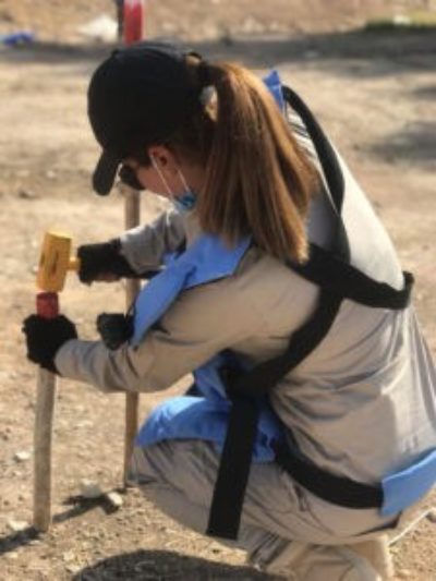 La FSD travaille dans le gouvernorat de Ninive, un des plus touchés par les combats. Les démineuses et démineurs en devenir sont recruté·es au sein de la population locale et suivent une formation de six semaines, au terme de laquelle elles/ils reçoivent leur diplôme de déminage de niveau 1. Une équipe composée de six femmes démineuses et d’une responsable des premiers secours a ainsi été formée fin 2019. D’autres recrues féminines ont en outre intégré les équipes chargées d’enquêter sur la localisation des mines artisanales et de sensibiliser la population aux dangers des engins explosifs.