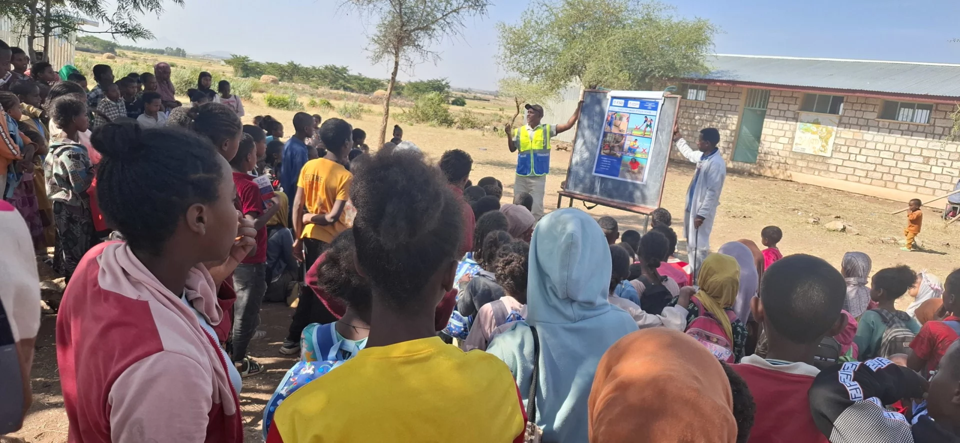 Grâce au soutien de donateurs privés, la FSD intervient au Tigré en partenariat avec l’organisation locale EPSS afin de mener des séances de sensibilisation aux risques liés aux engins explosifs. Ces activités s’adressent en priorité aux enfants, qui représentent plus de 60 % des victimes d’accidents dans le pays. Lors de ces séances, le participants reçoivent des informations et des conseils pratiques pour reconnaître les objets dangereux, adopter les bons réflexes, éviter les zones à risque et signaler tout engin suspect. Tant que le déminage est en cours, la sensibilisation demeure en effet le moyen le plus efficace de réduire les risques pour les populations locales.