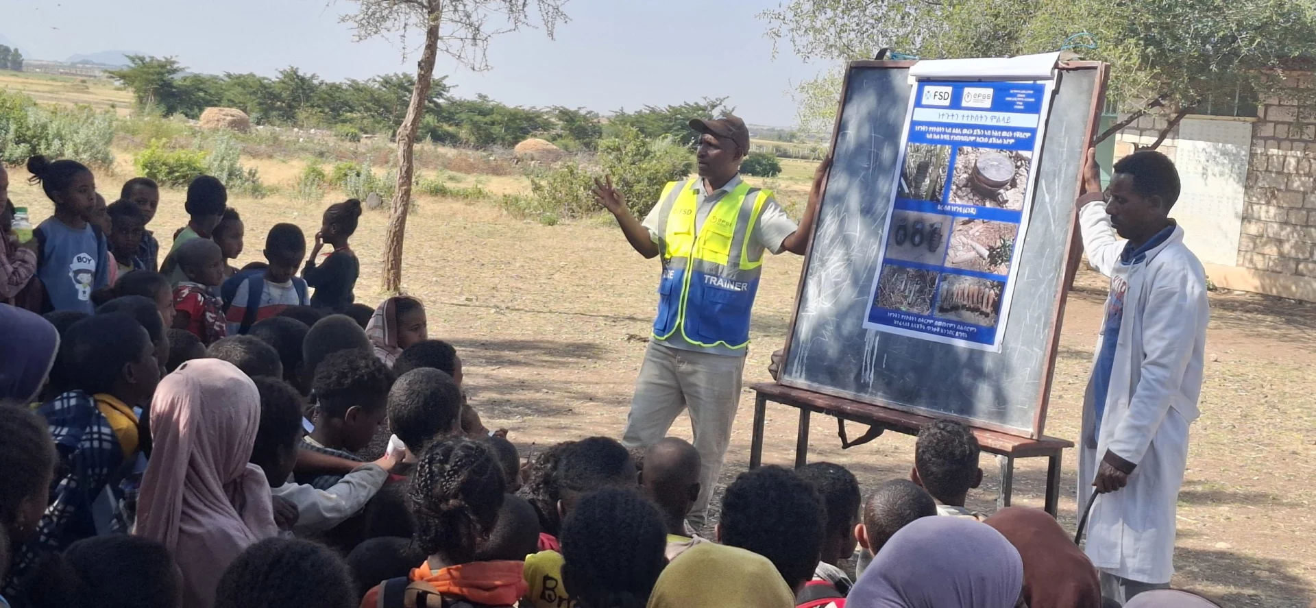 En Éthiopie, la FSD contribue à la lutte antimines en protégeant les populations vivant dans des zones touchées par les mines et restes explosifs grâce à des séances de sensibilisation menées en partenariat avec l’organisation locale EPSS.